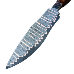 OEM özelleştirilebilir şam çelik şef bıçağı el yapımı reçine kolu ahşap boynuz malzeme EDC için bükülmüş desen deri kılıf